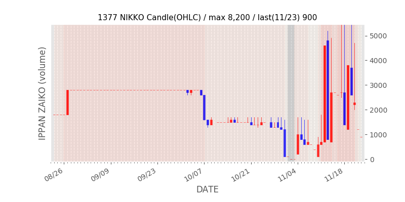 権利落ち日になると在庫が急回復します。どれだけの在庫が供給されたかを類推できます。もちろん、権利付最終日以前に大量補充された例も目立ちますから、過去チャートをご覧になる際は日付にご注意ください。