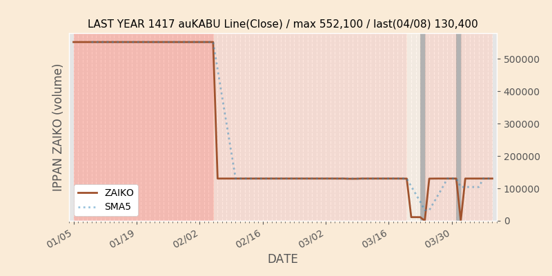 権利落ち日になると在庫が急回復します。どれだけの在庫が供給されたかを類推できます。もちろん、権利付最終日以前に大量補充された例も目立ちますから、過去チャートをご覧になる際は日付にご注意ください。