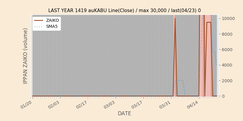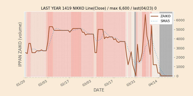 権利落ち日になると在庫が急回復します。どれだけの在庫が供給されたかを類推できます。もちろん、権利付最終日以前に大量補充された例も目立ちますから、過去チャートをご覧になる際は日付にご注意ください。