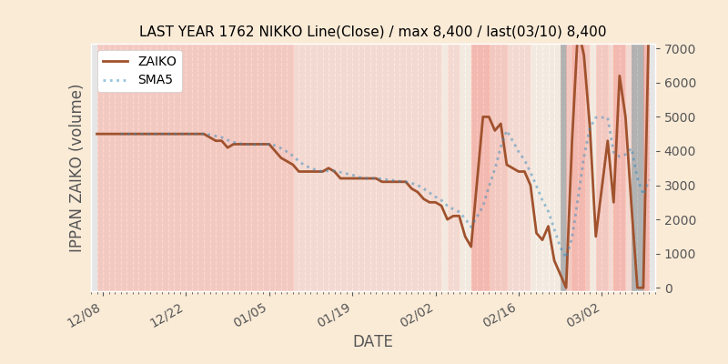 権利落ち日になると在庫が急回復します。どれだけの在庫が供給されたかを類推できます。もちろん、権利付最終日以前に大量補充された例も目立ちますから、過去チャートをご覧になる際は日付にご注意ください。