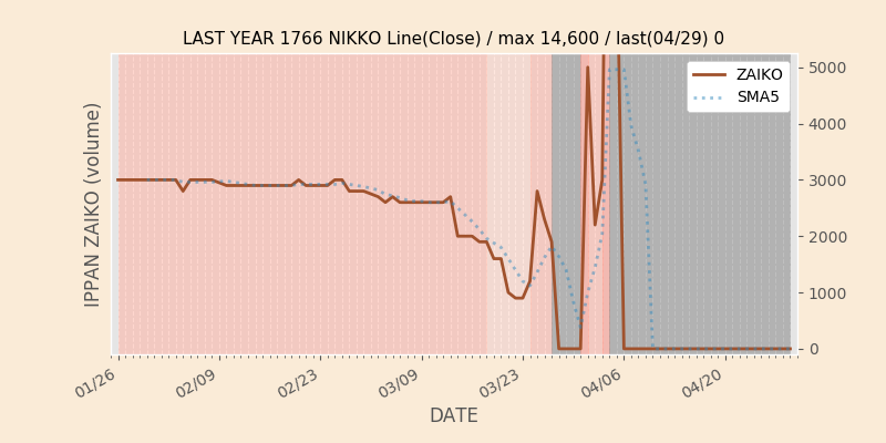 権利落ち日になると在庫が急回復します。どれだけの在庫が供給されたかを類推できます。もちろん、権利付最終日以前に大量補充された例も目立ちますから、過去チャートをご覧になる際は日付にご注意ください。