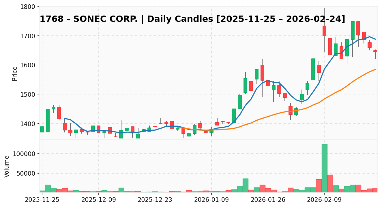 ソネック(銘柄コード:1768) ※2026/02/25朝更新