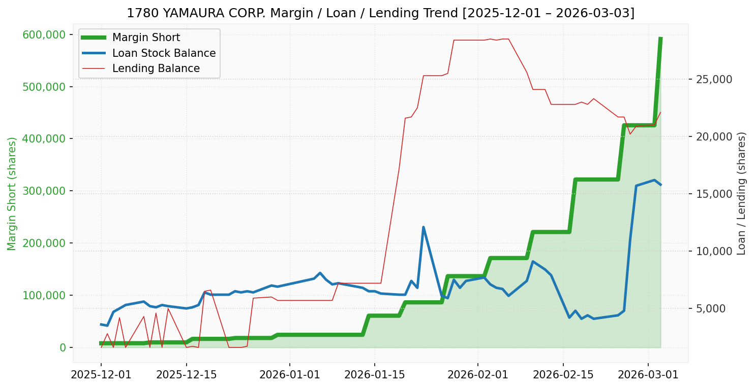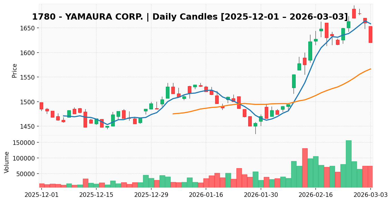 ヤマウラ(銘柄コード:1780) ※2026/03/04朝更新