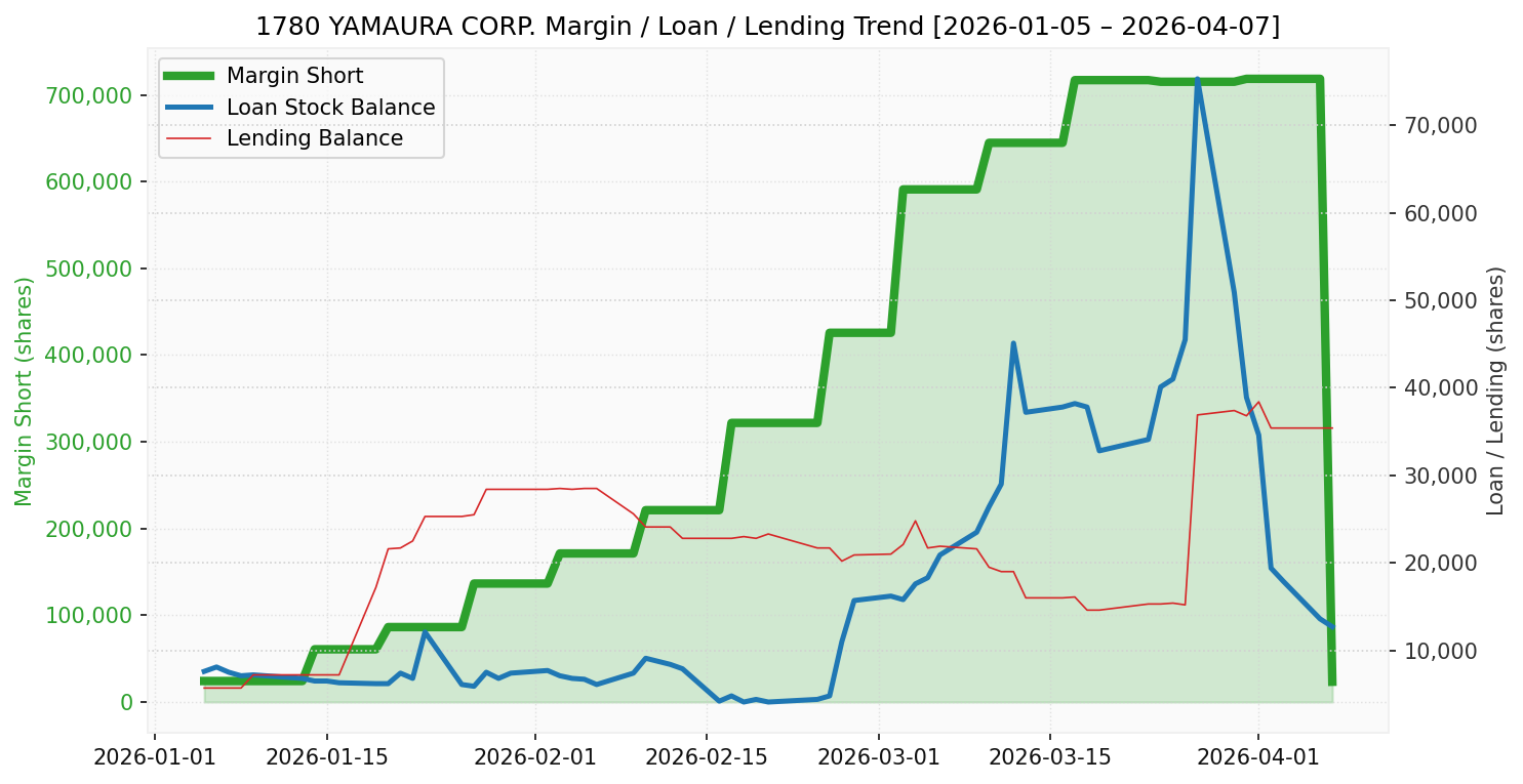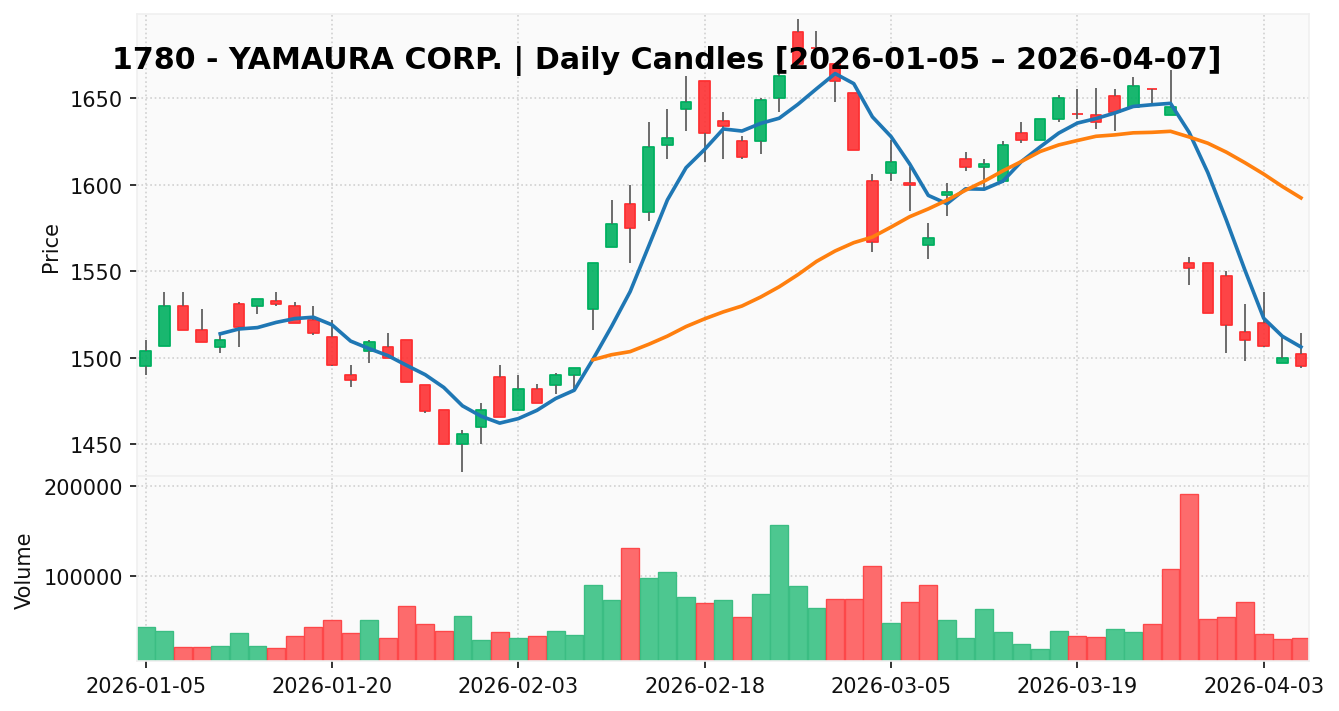 ヤマウラ(銘柄コード:1780) ※2026/04/08朝更新