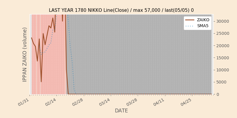 権利落ち日になると在庫が急回復します。どれだけの在庫が供給されたかを類推できます。もちろん、権利付最終日以前に大量補充された例も目立ちますから、過去チャートをご覧になる際は日付にご注意ください。