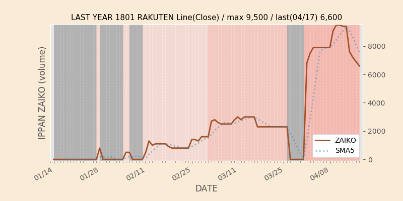 高値付近にある指値注文の合計株数です。一見在庫は無いのにキープの注文だけ行われクロス実行されないまま終わる注文は多数あり、その株数がどのくらいか?を推定する手がかりです。当然株数の全てが一般売りとは限りませんが、在庫数だけでは実態が見えない現状への対策です。