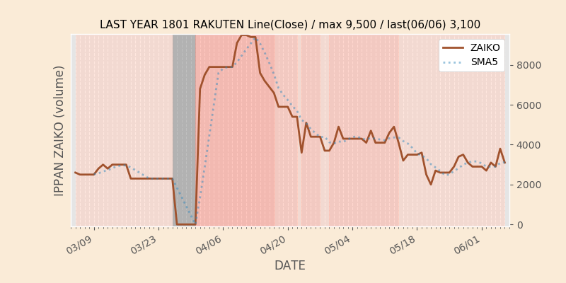 権利落ち日になると在庫が急回復します。どれだけの在庫が供給されたかを類推できます。もちろん、権利付最終日以前に大量補充された例も目立ちますから、過去チャートをご覧になる際は日付にご注意ください。