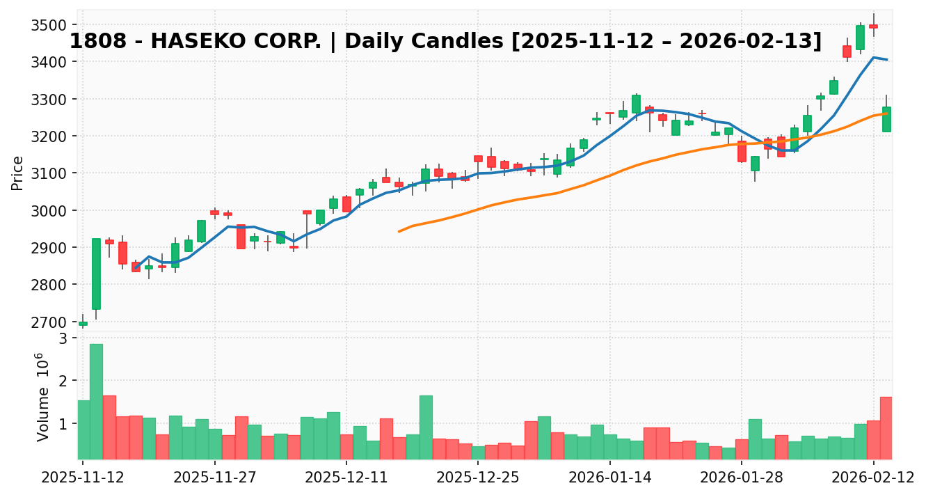 長谷工コーポレーション(銘柄コード:1808) ※2026/02/15朝更新