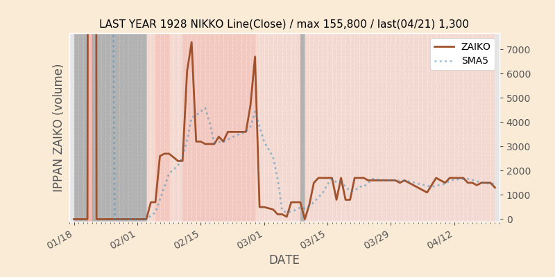 権利落ち日になると在庫が急回復します。どれだけの在庫が供給されたかを類推できます。もちろん、権利付最終日以前に大量補充された例も目立ちますから、過去チャートをご覧になる際は日付にご注意ください。