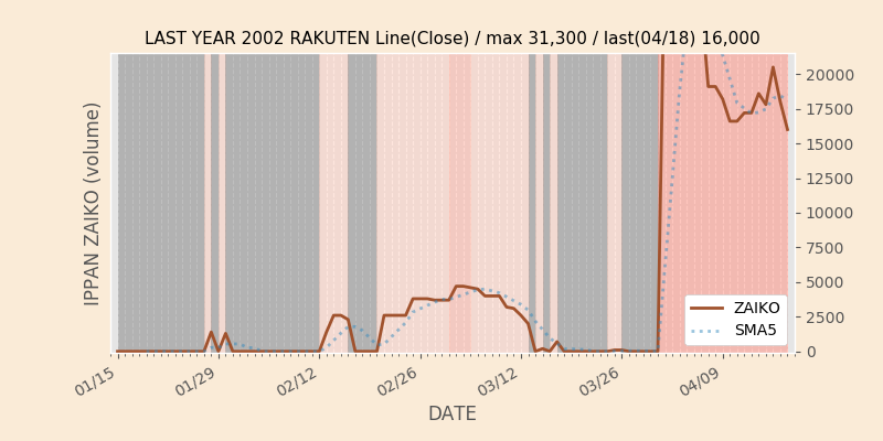 高値付近にある指値注文の合計株数です。一見在庫は無いのにキープの注文だけ行われクロス実行されないまま終わる注文は多数あり、その株数がどのくらいか?を推定する手がかりです。当然株数の全てが一般売りとは限りませんが、在庫数だけでは実態が見えない現状への対策です。