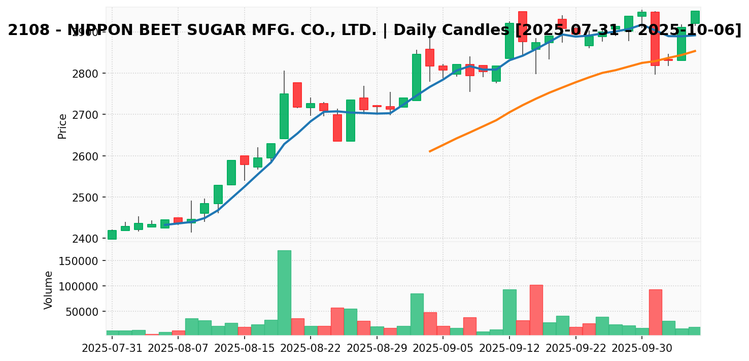 日本甜菜製糖(銘柄コード:2108) ※2025/10/07朝更新