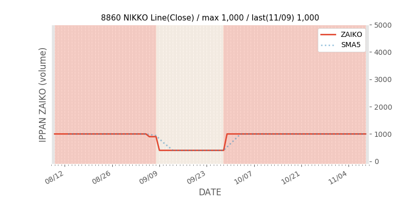 権利落ち日になると在庫が急回復します。どれだけの在庫が供給されたかを類推できます。もちろん、権利付最終日以前に大量補充された例も目立ちますから、過去チャートをご覧になる際は日付にご注意ください。