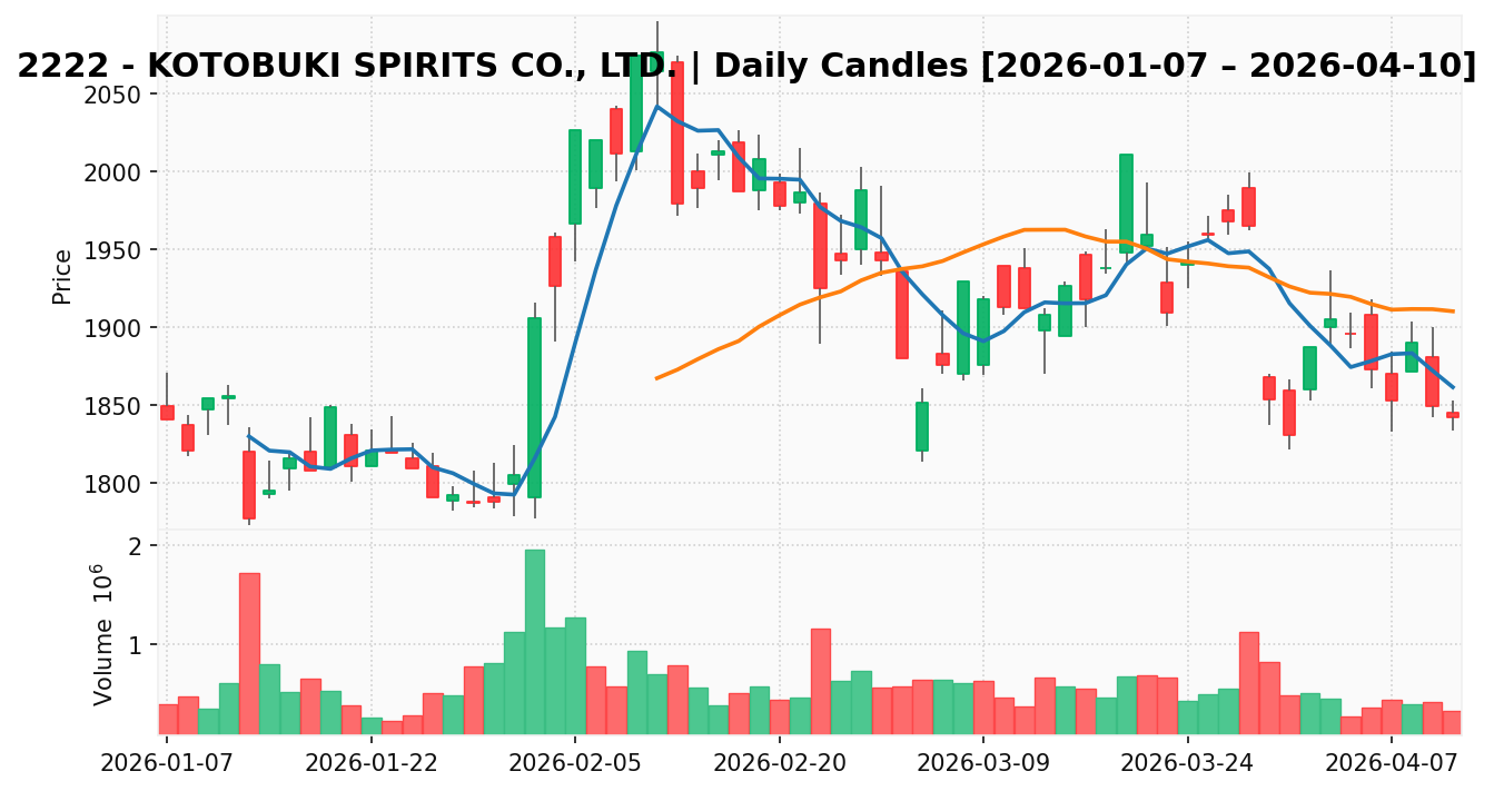 寿スピリッツ(銘柄コード:2222) ※2026/04/11朝更新