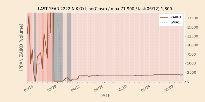 寿スピリッツ(2222)の一般信用在庫推移