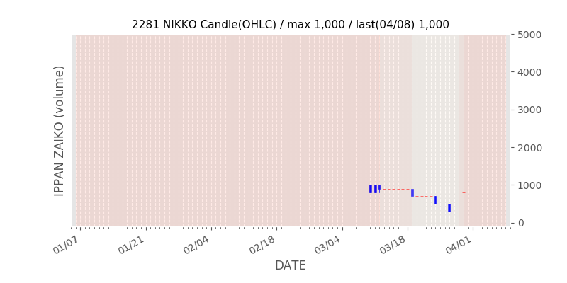 権利落ち日になると在庫が急回復します。どれだけの在庫が供給されたかを類推できます。もちろん、権利付最終日以前に大量補充された例も目立ちますから、過去チャートをご覧になる際は日付にご注意ください。