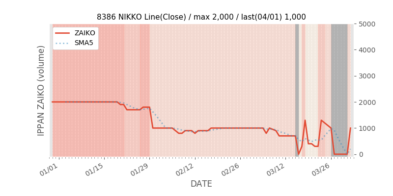 権利落ち日になると在庫が急回復します。どれだけの在庫が供給されたかを類推できます。もちろん、権利付最終日以前に大量補充された例も目立ちますから、過去チャートをご覧になる際は日付にご注意ください。