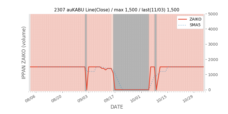権利落ち日になると在庫が急回復します。どれだけの在庫が供給されたかを類推できます。もちろん、権利付最終日以前に大量補充された例も目立ちますから、過去チャートをご覧になる際は日付にご注意ください。