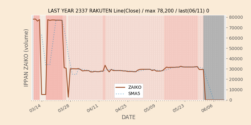 権利落ち日になると在庫が急回復します。どれだけの在庫が供給されたかを類推できます。もちろん、権利付最終日以前に大量補充された例も目立ちますから、過去チャートをご覧になる際は日付にご注意ください。