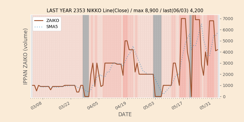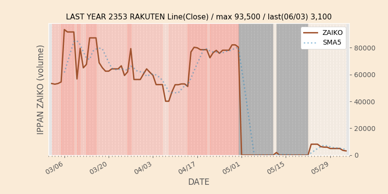 権利落ち日になると在庫が急回復します。どれだけの在庫が供給されたかを類推できます。もちろん、権利付最終日以前に大量補充された例も目立ちますから、過去チャートをご覧になる際は日付にご注意ください。