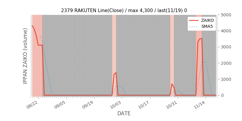 - SBIとGMOを含んだ直近数日の在庫の履歴