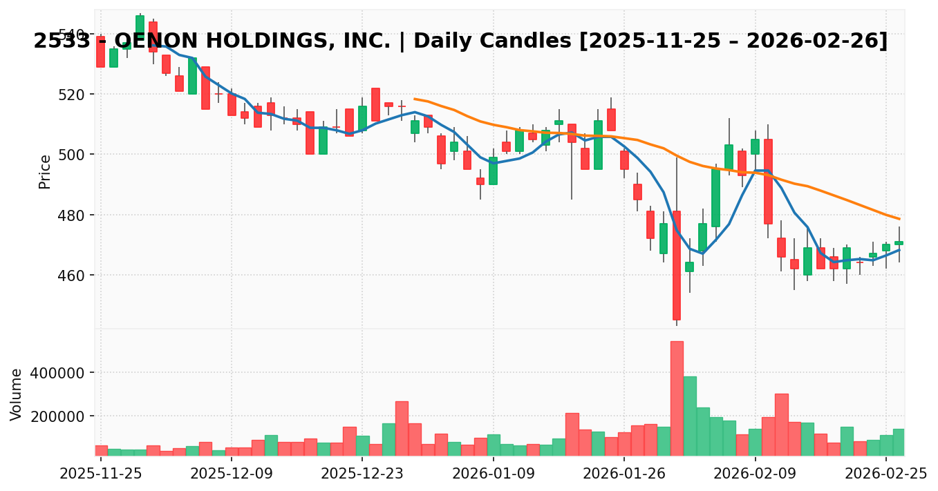 オエノン(銘柄コード:2533) ※2026/02/27朝更新
