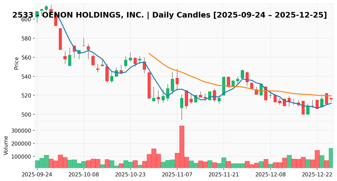 オエノン(銘柄コード:2533) ※2025/12/26朝更新