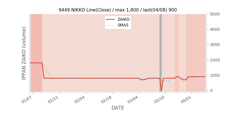 権利落ち日になると在庫が急回復します。どれだけの在庫が供給されたかを類推できます。もちろん、権利付最終日以前に大量補充された例も目立ちますから、過去チャートをご覧になる際は日付にご注意ください。
