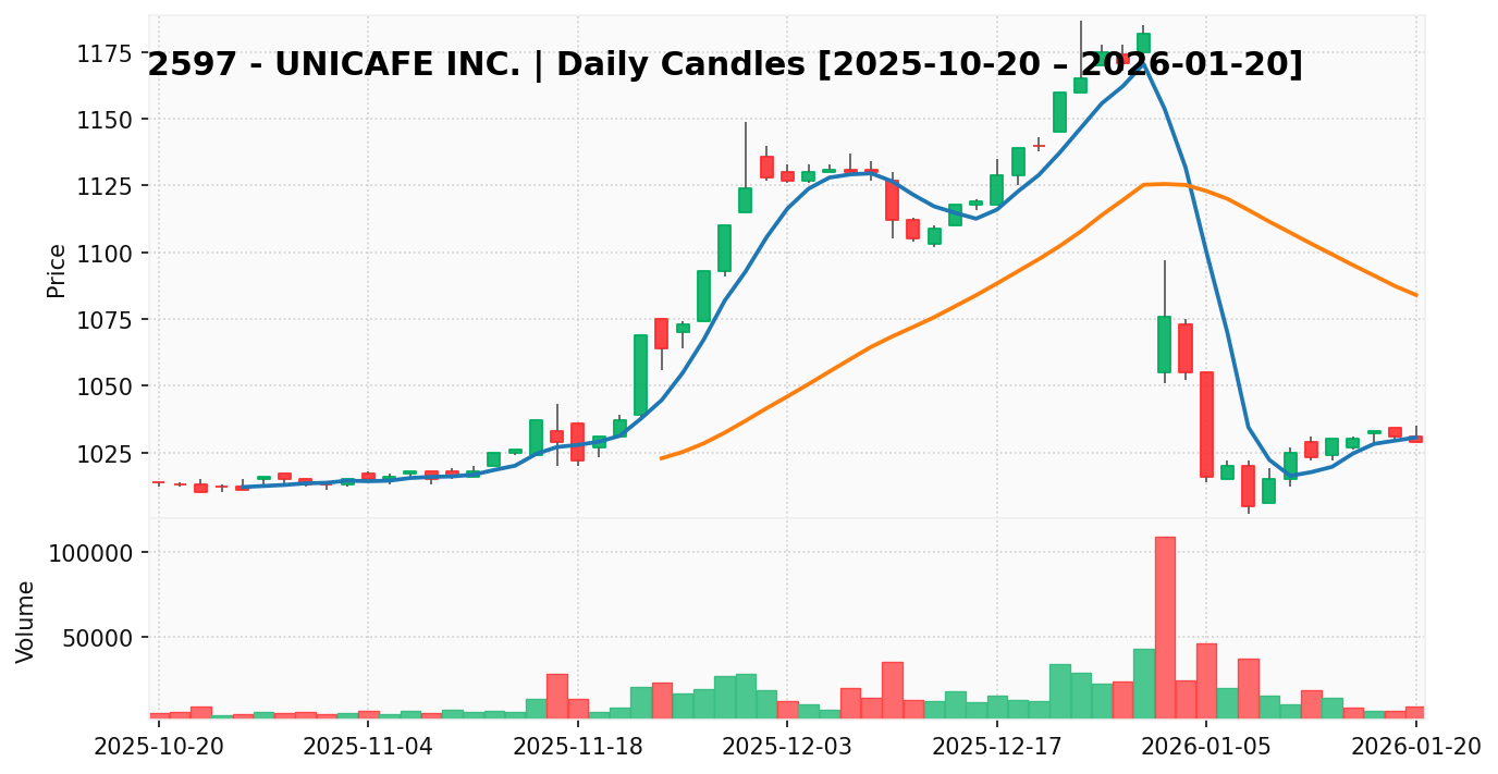 ユニカフェ(銘柄コード:2597) ※2026/01/21朝更新