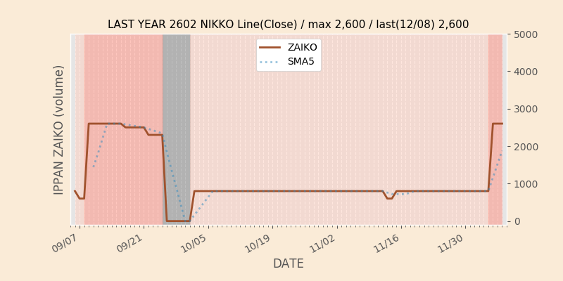 日清オイリオG(2602)の一般信用在庫推移
