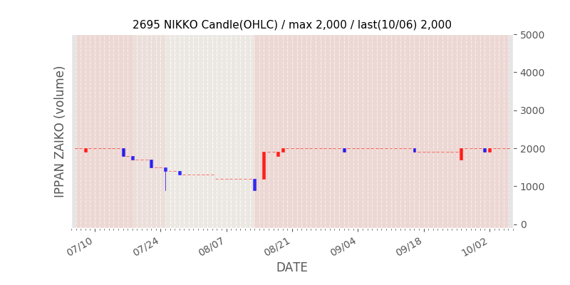 権利落ち日になると在庫が急回復します。どれだけの在庫が供給されたかを類推できます。もちろん、権利付最終日以前に大量補充された例も目立ちますから、過去チャートをご覧になる際は日付にご注意ください。