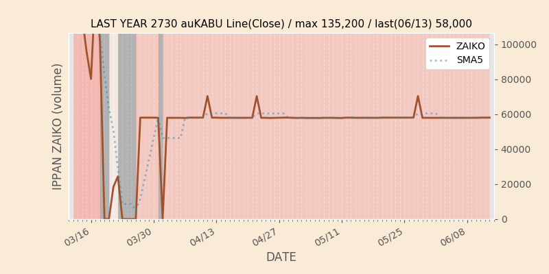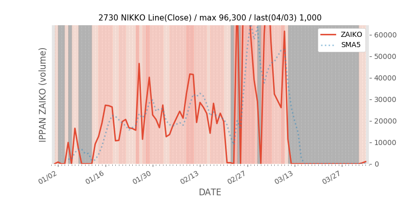 権利落ち日になると在庫が急回復します。どれだけの在庫が供給されたかを類推できます。もちろん、権利付最終日以前に大量補充された例も目立ちますから、過去チャートをご覧になる際は日付にご注意ください。