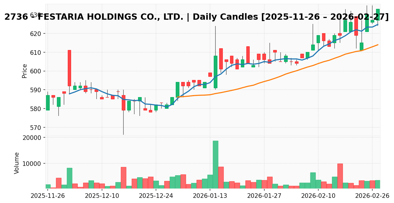 フェスタリア(銘柄コード:2736) ※2026/02/28朝更新