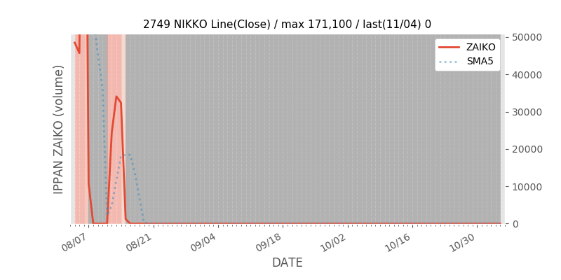 権利落ち日になると在庫が急回復します。どれだけの在庫が供給されたかを類推できます。もちろん、権利付最終日以前に大量補充された例も目立ちますから、過去チャートをご覧になる際は日付にご注意ください。