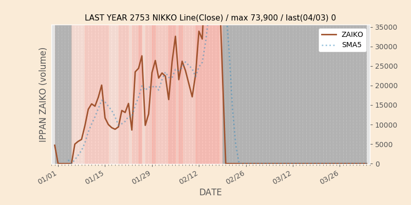 権利落ち日になると在庫が急回復します。どれだけの在庫が供給されたかを類推できます。もちろん、権利付最終日以前に大量補充された例も目立ちますから、過去チャートをご覧になる際は日付にご注意ください。