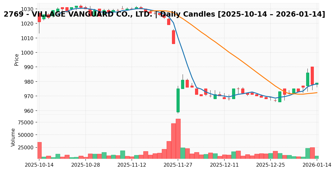 ヴィレッジヴァンガードコーポ(銘柄コード:2769) ※2026/01/15朝更新