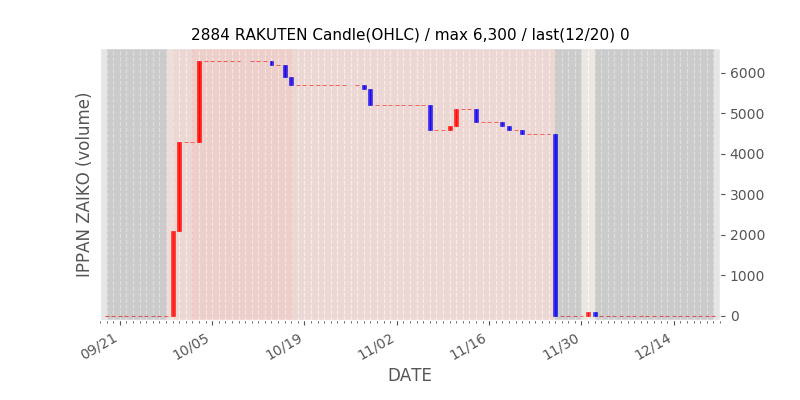 高値付近にある指値注文の合計株数です。一見在庫は無いのにキープの注文だけ行われクロス実行されないまま終わる注文は多数あり、その株数がどのくらいか?を推定する手がかりです。当然株数の全てが一般売りとは限りませんが、在庫数だけでは実態が見えない現状への対策です。