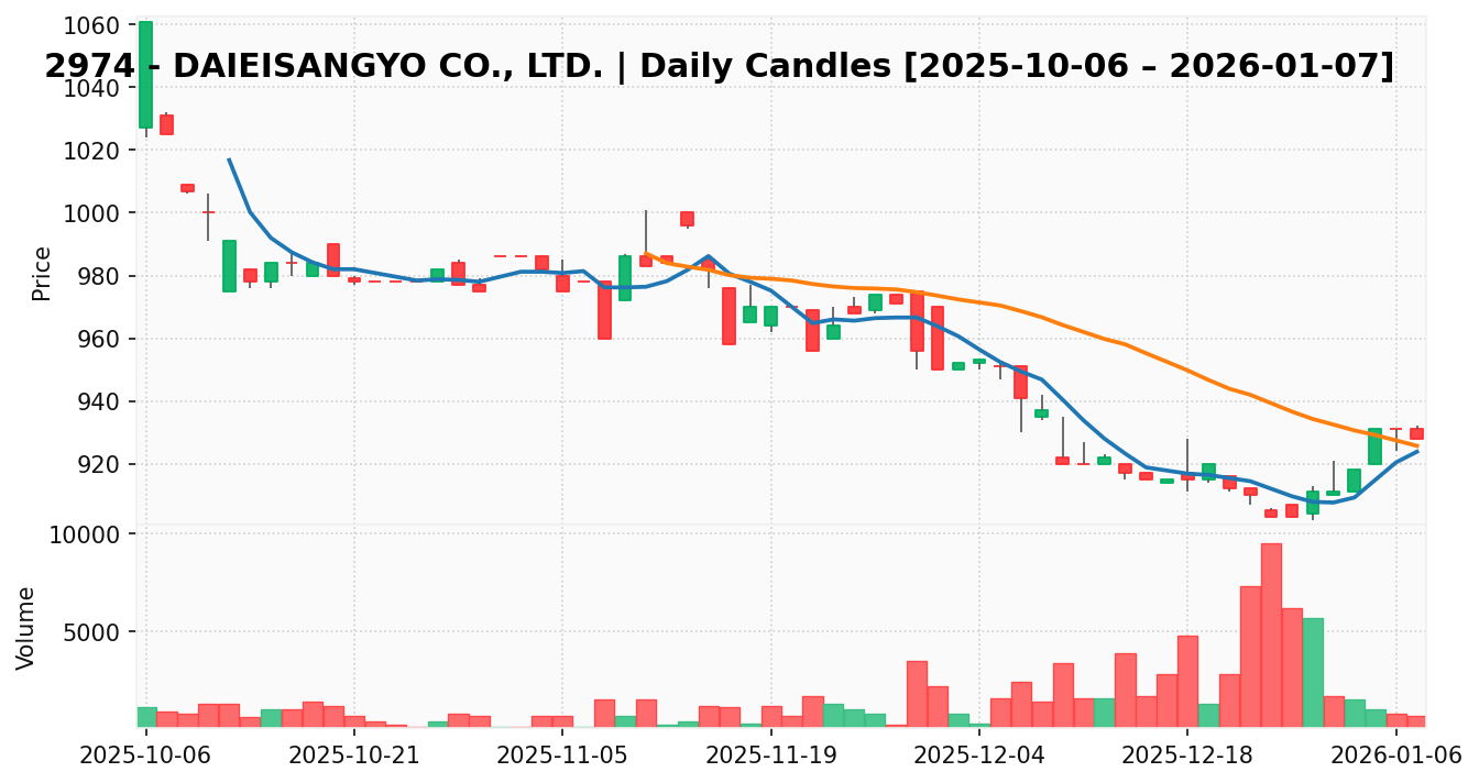 大英産業(銘柄コード:2974) ※2026/01/08朝更新