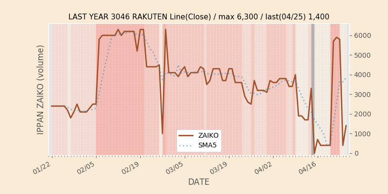 権利落ち日になると在庫が急回復します。どれだけの在庫が供給されたかを類推できます。もちろん、権利付最終日以前に大量補充された例も目立ちますから、過去チャートをご覧になる際は日付にご注意ください。