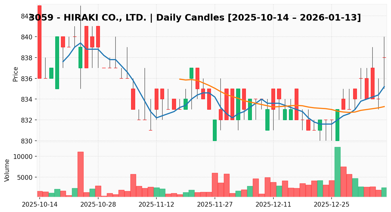 ヒラキ(銘柄コード:3059) ※2026/01/14朝更新