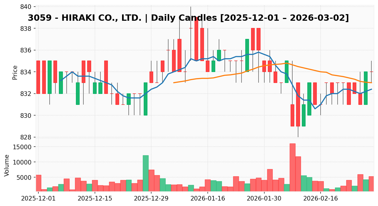 ヒラキ(銘柄コード:3059) ※2026/03/03朝更新