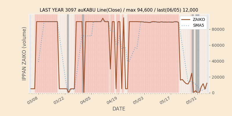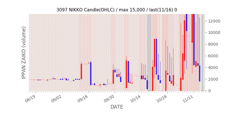 権利落ち日になると在庫が急回復します。どれだけの在庫が供給されたかを類推できます。もちろん、権利付最終日以前に大量補充された例も目立ちますから、過去チャートをご覧になる際は日付にご注意ください。