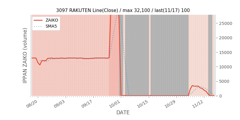 - SBIとGMOを含んだ直近数日の在庫の履歴