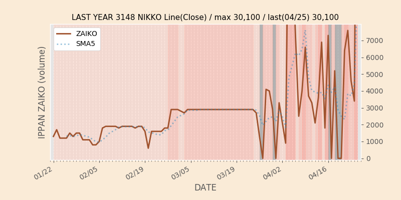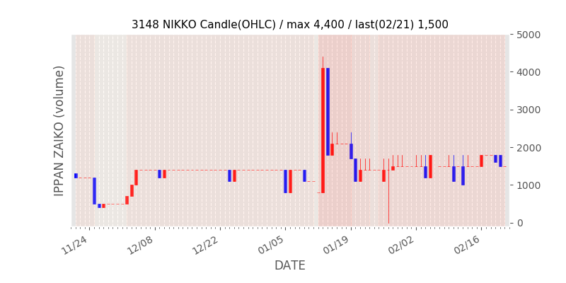 権利落ち日になると在庫が急回復します。どれだけの在庫が供給されたかを類推できます。もちろん、権利付最終日以前に大量補充された例も目立ちますから、過去チャートをご覧になる際は日付にご注意ください。
