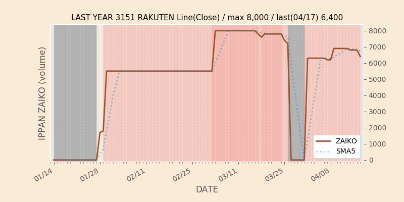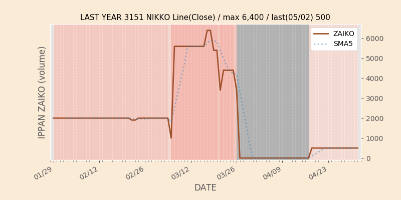 権利落ち日になると在庫が急回復します。どれだけの在庫が供給されたかを類推できます。もちろん、権利付最終日以前に大量補充された例も目立ちますから、過去チャートをご覧になる際は日付にご注意ください。