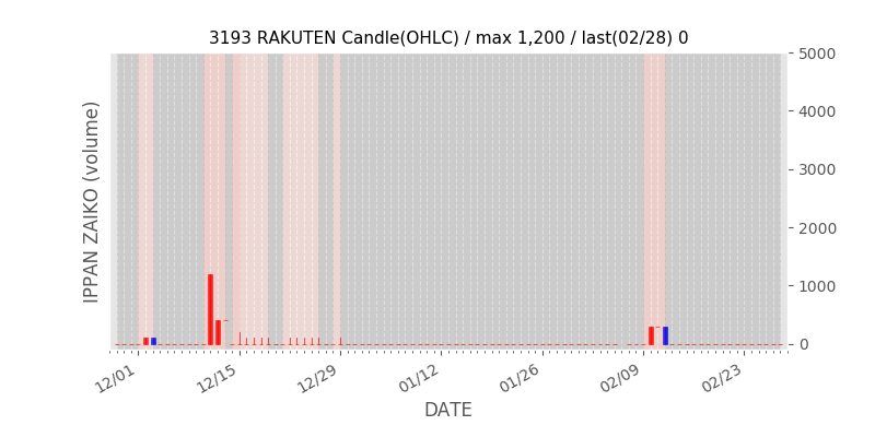 高値付近にある指値注文の合計株数です。一見在庫は無いのにキープの注文だけ行われクロス実行されないまま終わる注文は多数あり、その株数がどのくらいか?を推定する手がかりです。当然株数の全てが一般売りとは限りませんが、在庫数だけでは実態が見えない現状への対策です。
