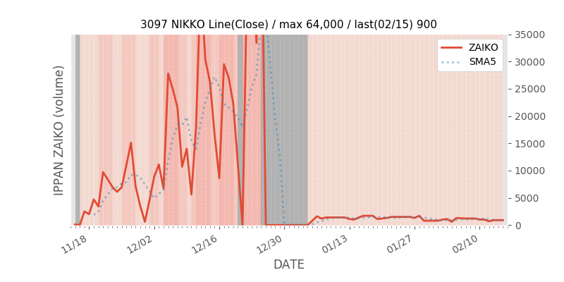 権利落ち日になると在庫が急回復します。どれだけの在庫が供給されたかを類推できます。もちろん、権利付最終日以前に大量補充された例も目立ちますから、過去チャートをご覧になる際は日付にご注意ください。