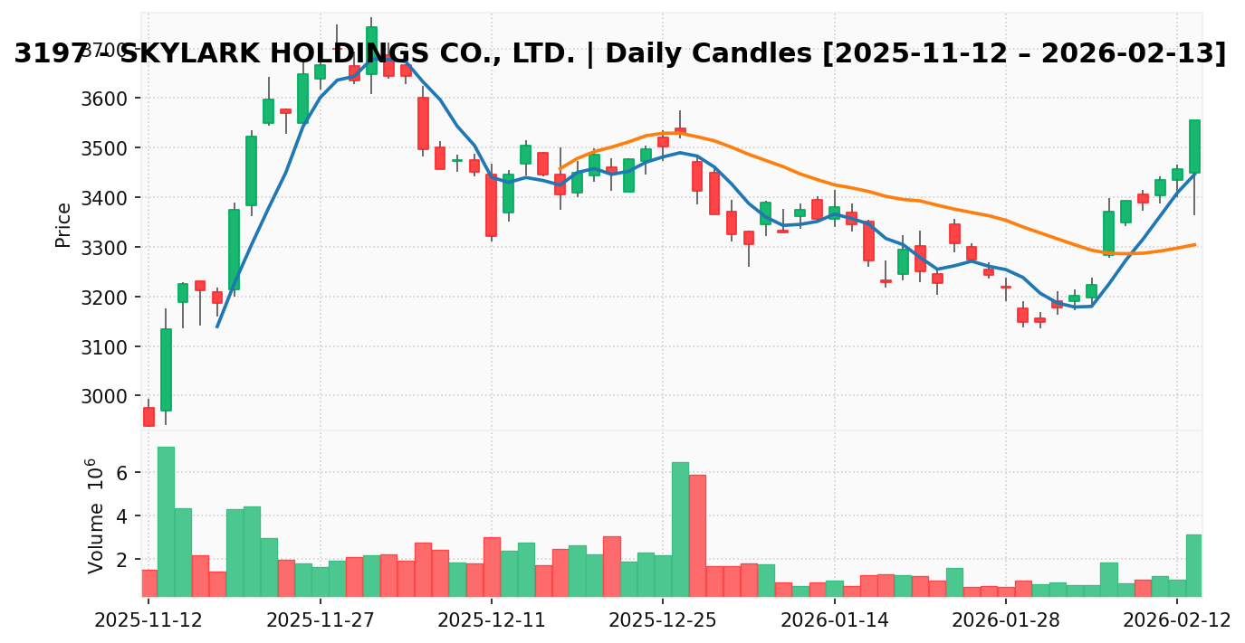 すかいらーく(銘柄コード:3197) ※2026/02/16朝更新