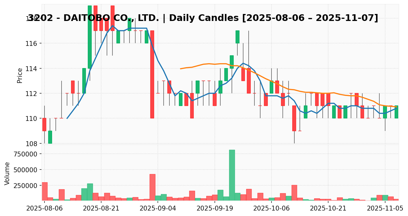 ダイトウボウ(銘柄コード:3202) ※2025/11/08朝更新