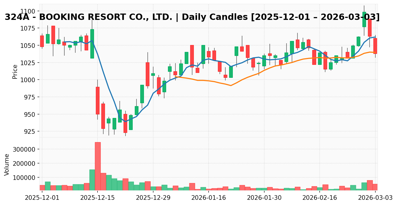 ブッキングリゾート(銘柄コード:324A) ※2026/03/04朝更新