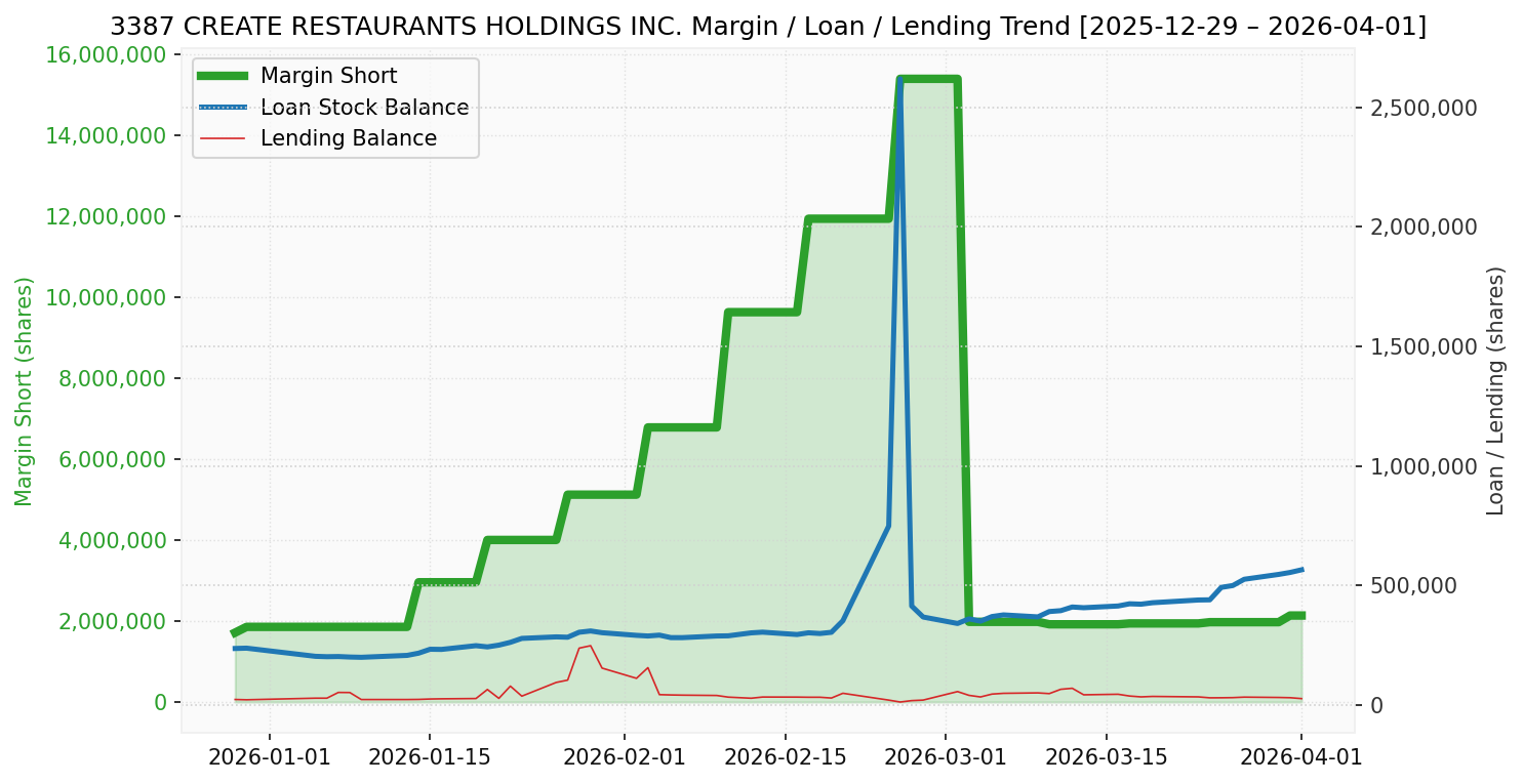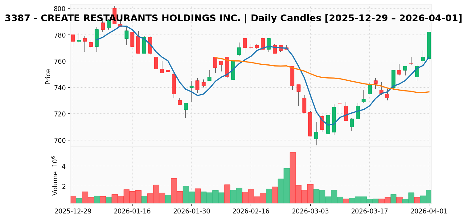 クリエイト・レストランツ (銘柄コード:3387) ※2026/04/02朝更新
